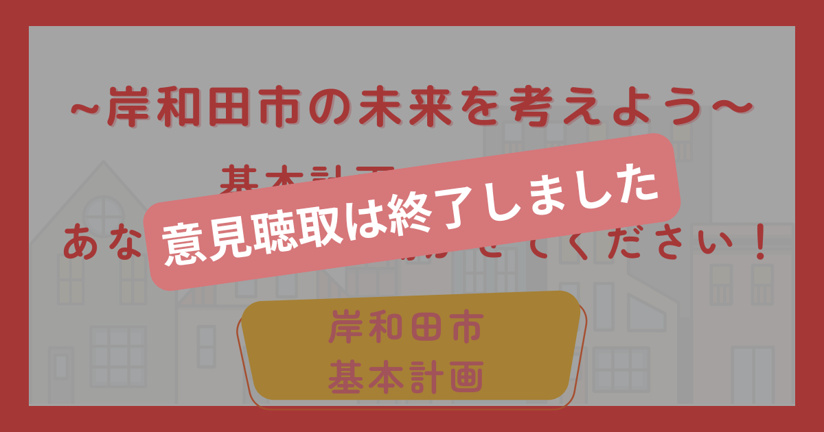 岸和田市の未来を考えよう〜基本目標に関するあなたの意見を聞かせて... 岸和田市の将来像《 個性きらめき 魅力あふれる ホッとなまち 岸和田》 の実現に向けて、6つの基本目標を設定しました。 理想のまちを市民のみさなんと一緒に作っていくために、あなたの意見を聞かせてください!